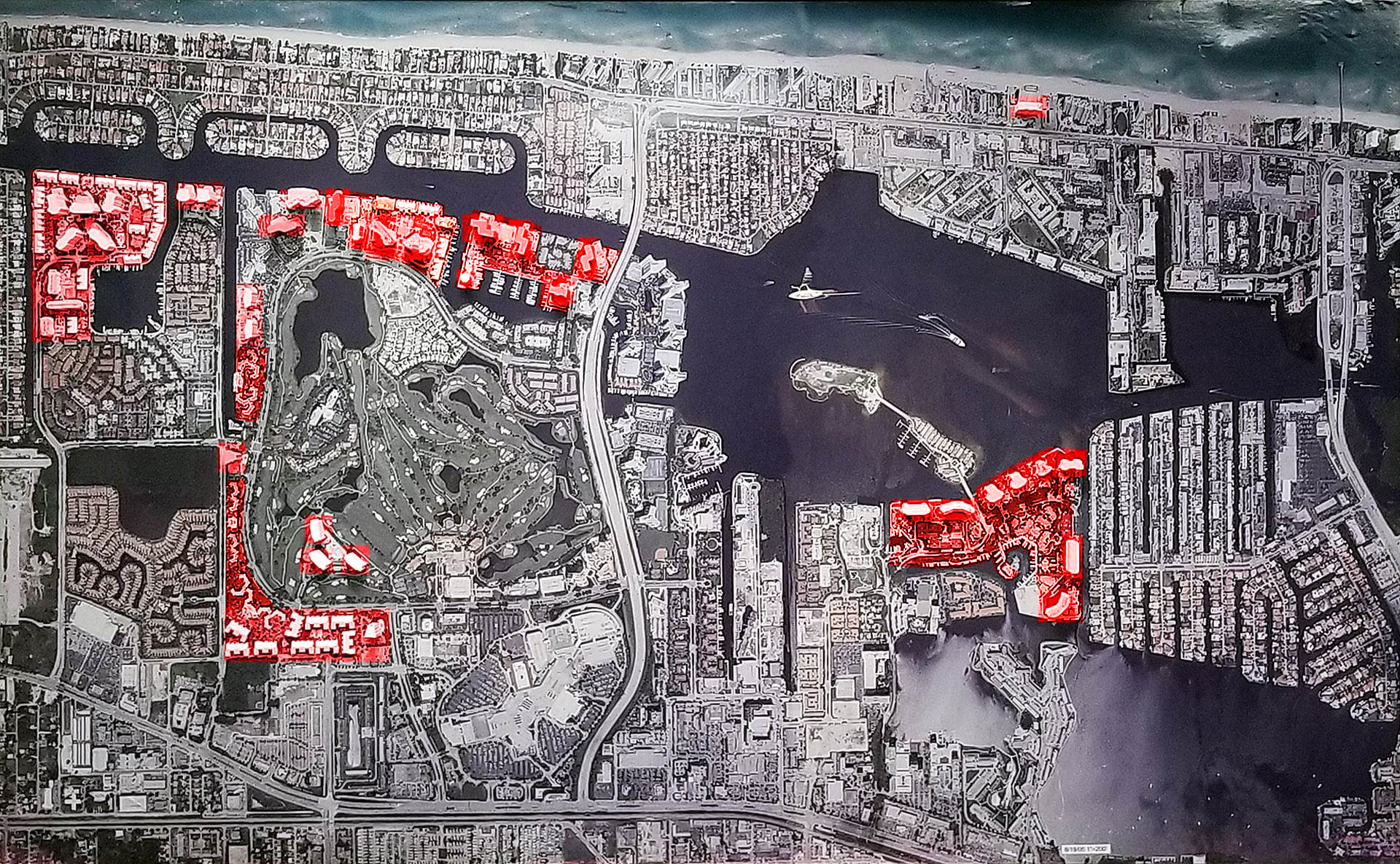Buildings highlighted in Red on the aerial map shown here are projects designed by Swedroe Architecture.